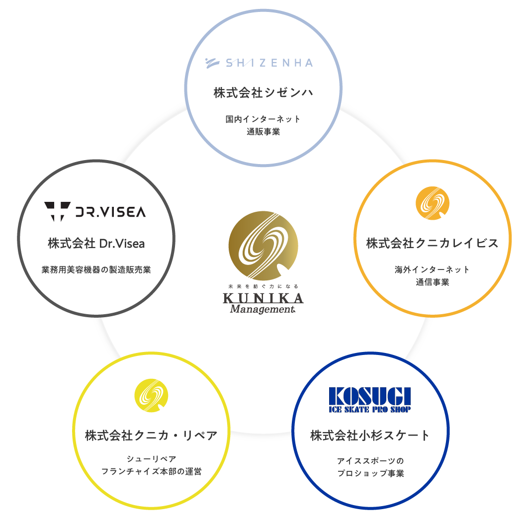 クニカマネジメントは、“ヒト・モノ・カネ”の全面からグループ会社を支援するホールディングス会社です。